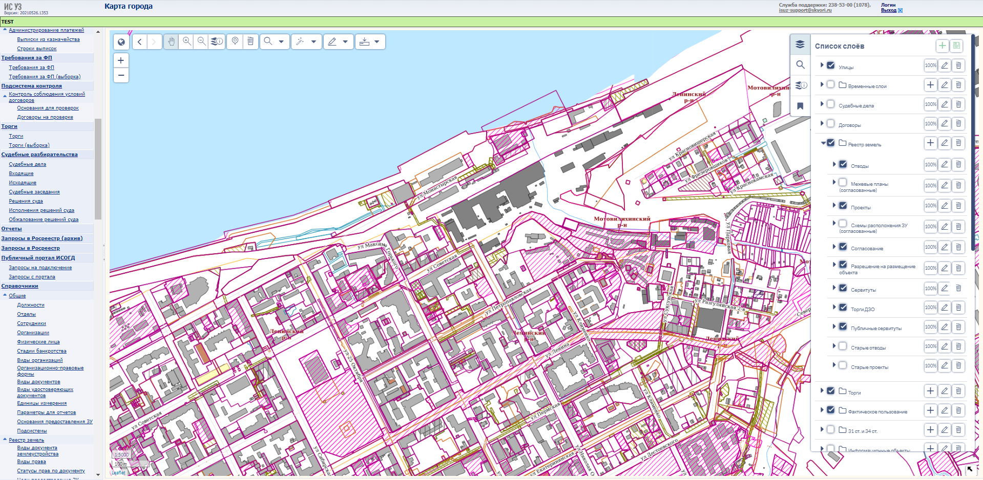 - Ведение пространственных данных о земельных участках, получение данных о кадастровом делении, градостроительных зонах, зонах ограничений и т.д.