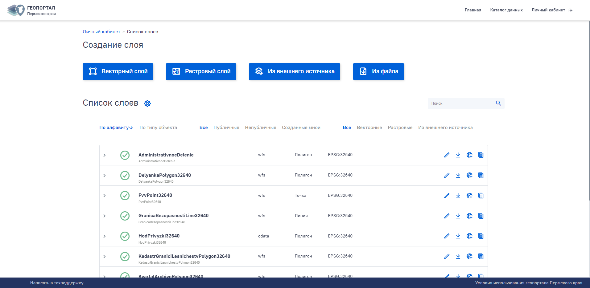 - Создание и настройка новых слоев и карт с пространственными данными, публикация карт и слоев в открытом доступе на общедоступном геопортале